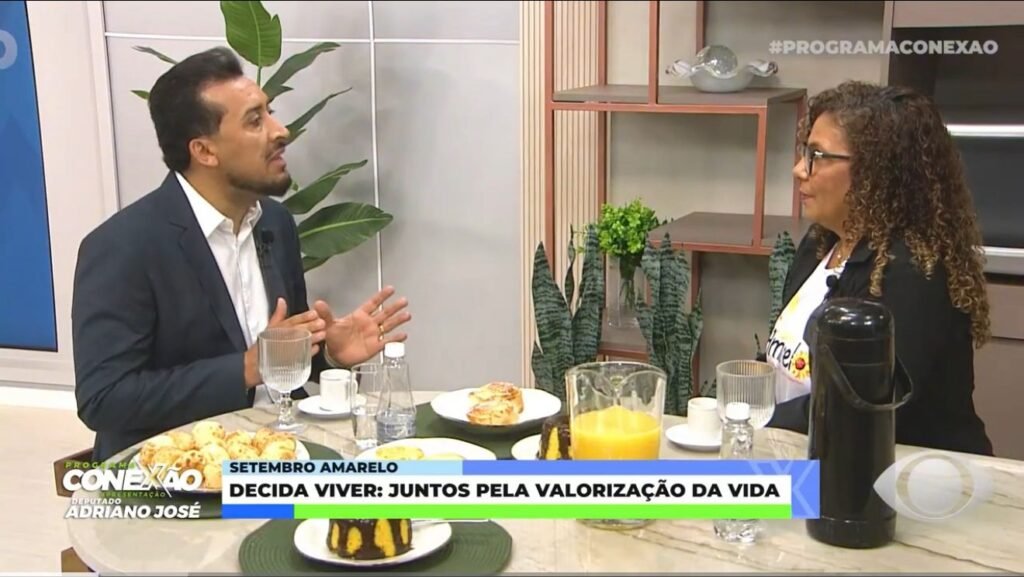 Deputado Adriano José e Regina, da ONG Decida Viver, se encontram em um café especial no programa Conexão para falar sobre prevenção ao suicídio