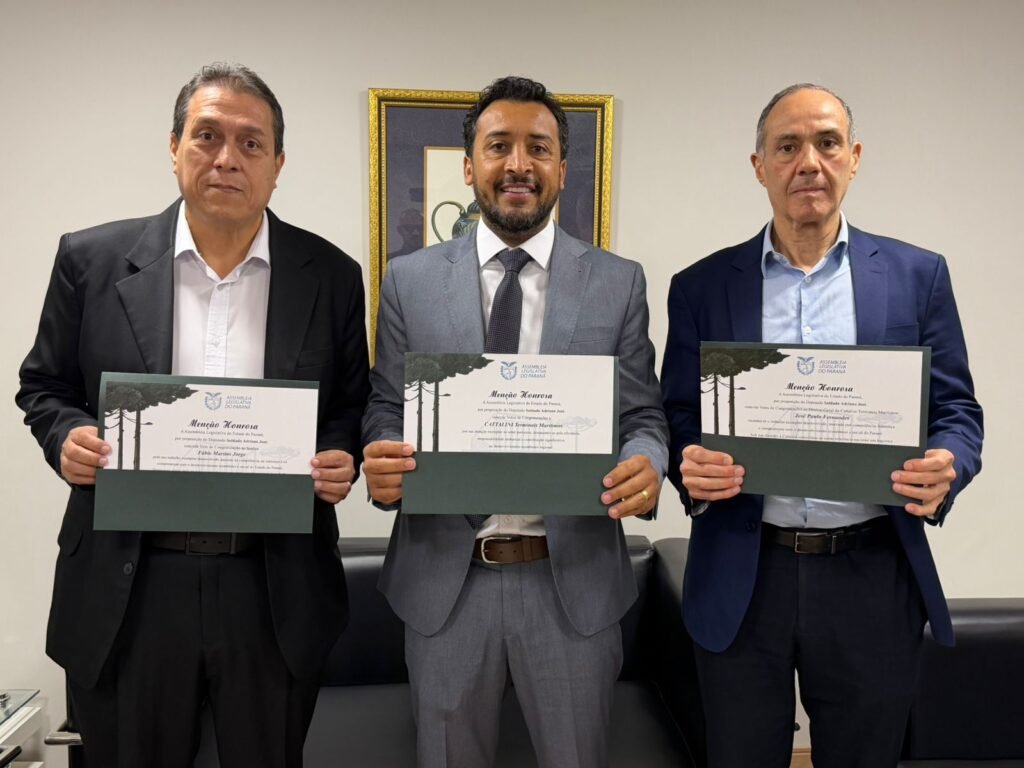 Na Assembleia Legislativa do Paraná realizou-se uma homenagem especial à Cattalini Terminais Marítimos e a duas de suas principais lideranças, reconhecendo a contribuição da empresa para o fortalecimento da economia paranaense e do setor portuário brasileiro. A iniciativa partiu do deputado estadual Adriano José, que entregou Menções Honrosas ao diretor-geral da empresa, José Paulo Fernandes, e ao executivo Fábio Martins Jorge, destacando o papel estratégico que ambos desempenham no desenvolvimento logístico e produtivo do Estado.