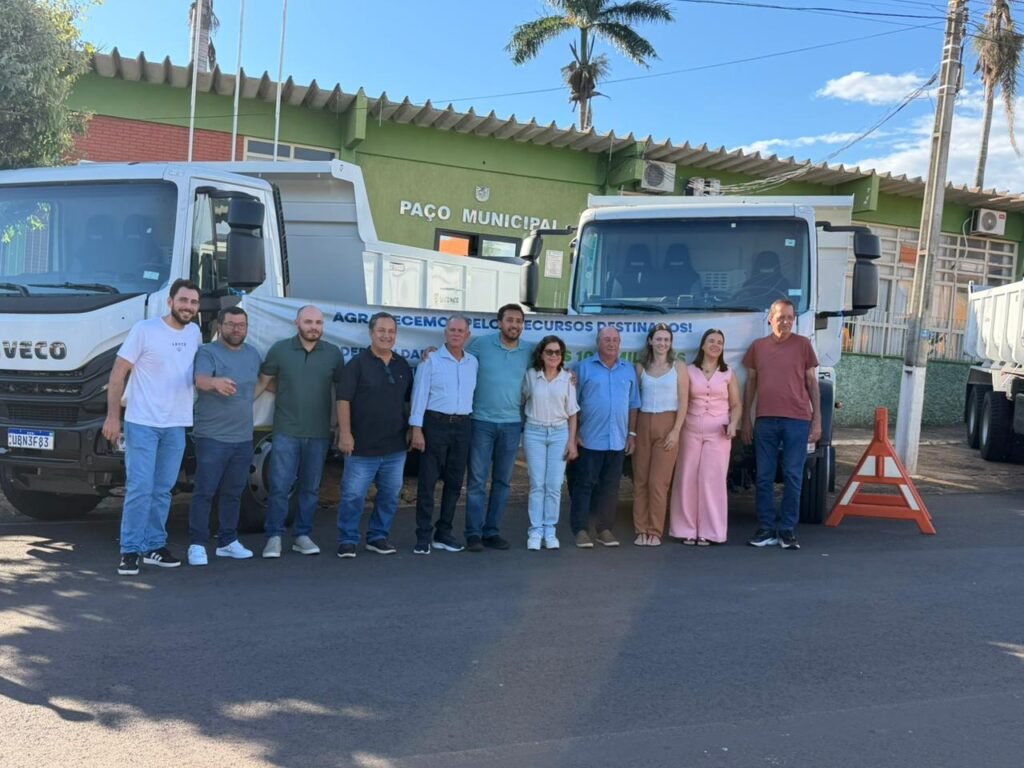 Entre os equipamentos destinados à cidade estão caminhão compactador de lixo, caminhões caçamba e retroescavadeiras, que ampliarão a capacidade de atendimento da administração municipal em áreas estratégicas, como manutenção de estradas, serviços urbanos e suporte às atividades agrícolas.
